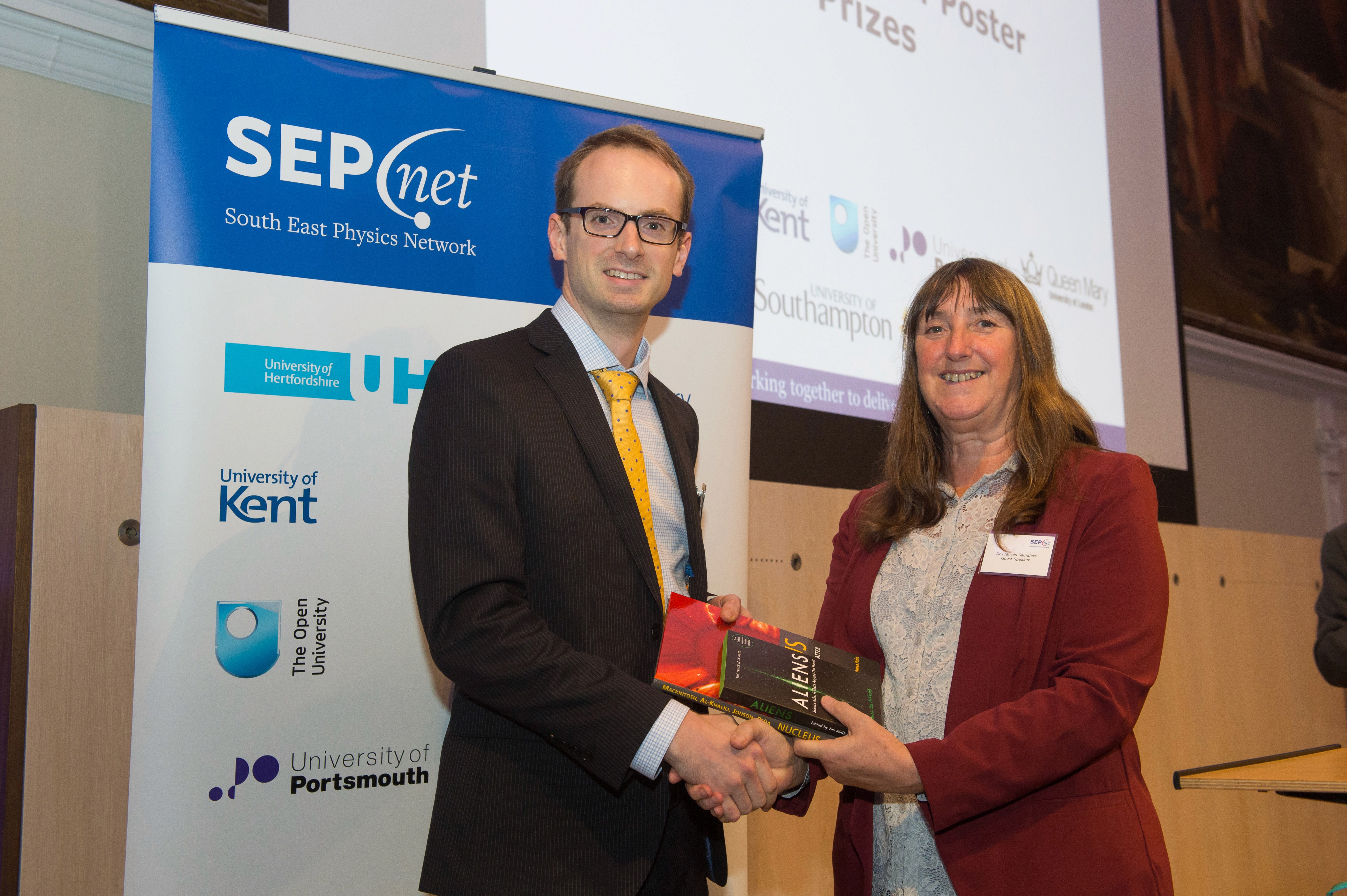 The Institute of Physics sponsored the 6 prizes. Each winner a signed copy of the brand new book 'Aliens' edited by Jim Al-Khalili and a copy of his co-authored book 'Nucleus: a trip into the heart of matter' (the only coffee table glossy hardback on nuclear physics in the world!)